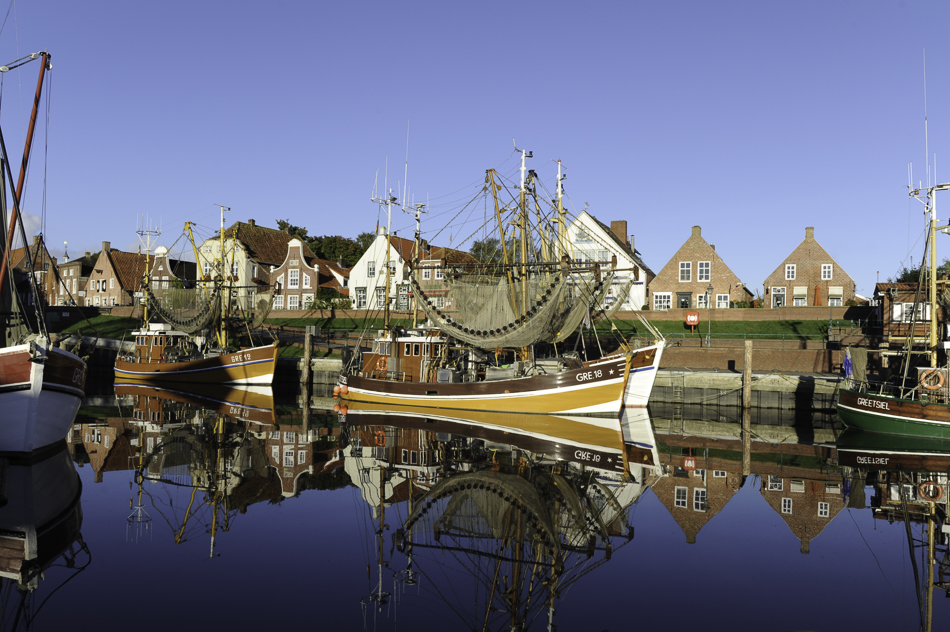 Besondere Sehenswürdigkeiten sind der historische Hafen mit Siel im Ortskern, die Greetsieler Zwillingsmühlen, die historische Kirche, das Steinhaus, der Katrepel, …